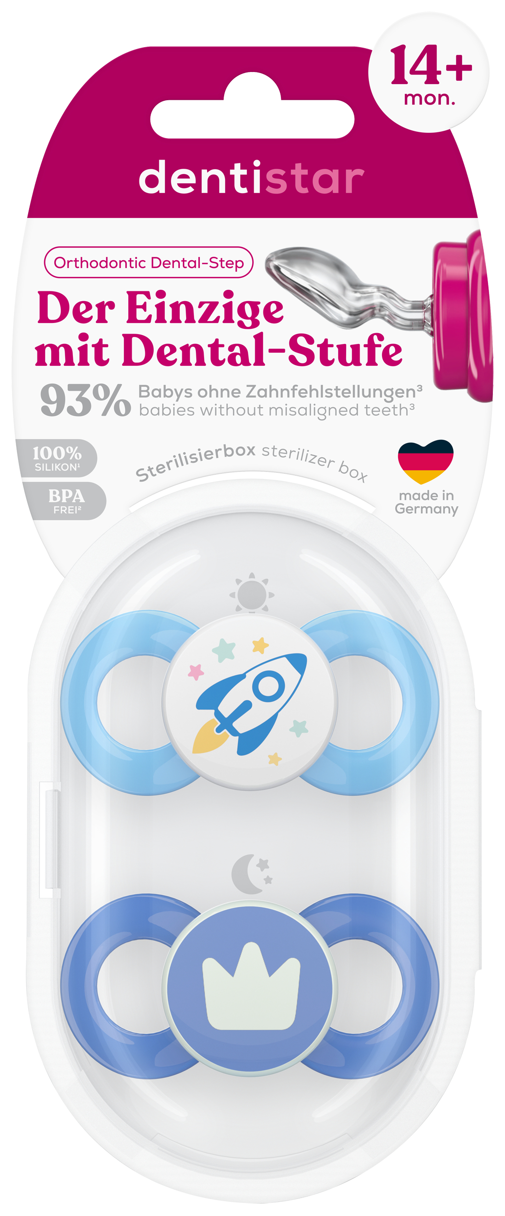 Dentistar ortodontické dudlíky od 14 měsíců věku, modré