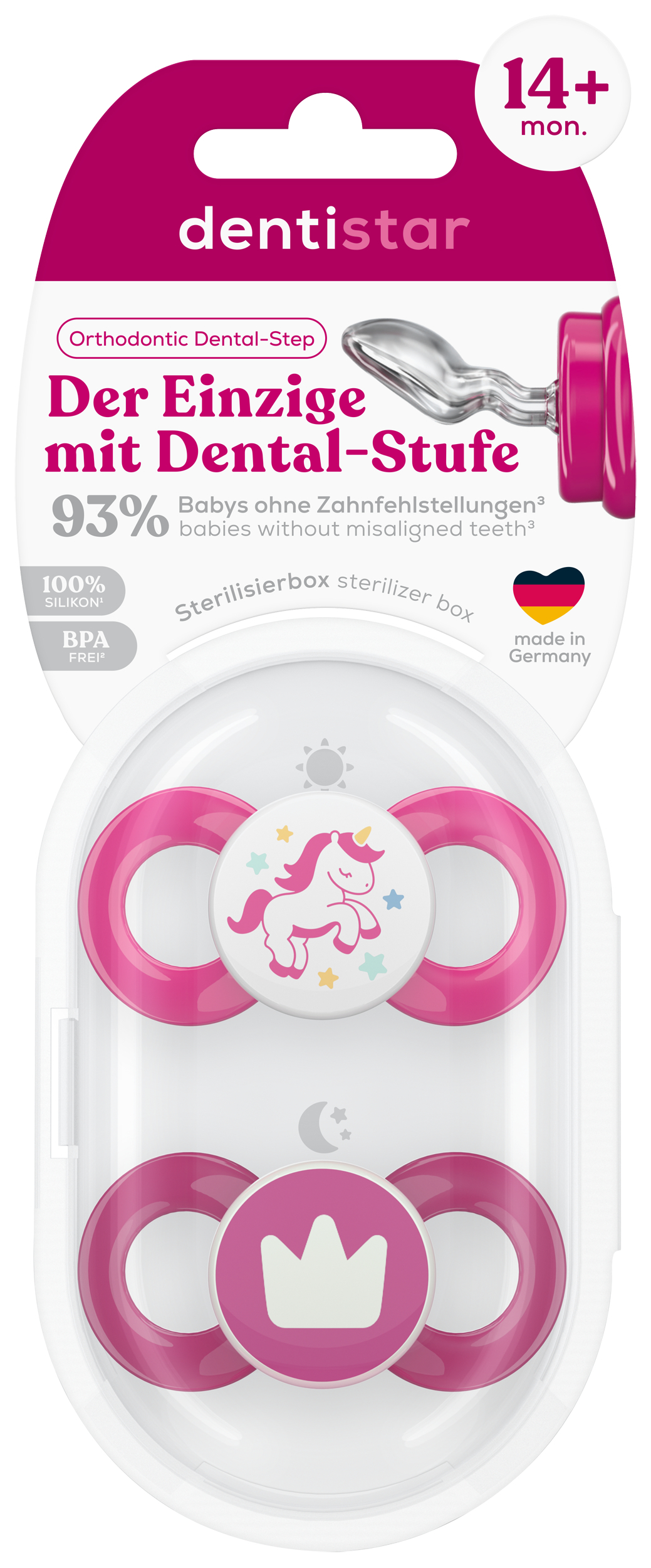 Dentistar ortodontické dudlíky od 14 měsíců věku, růžové