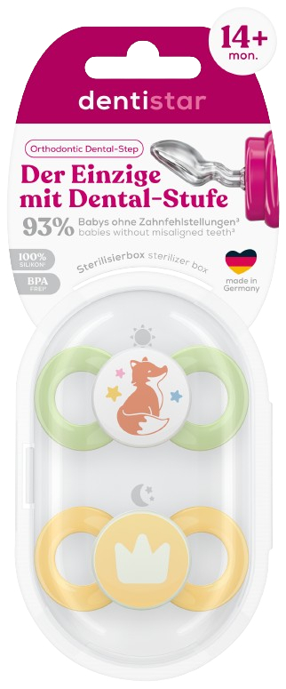 Dentistar ortodontické dudlíky od 14 měsíců věku, žluto-zelené