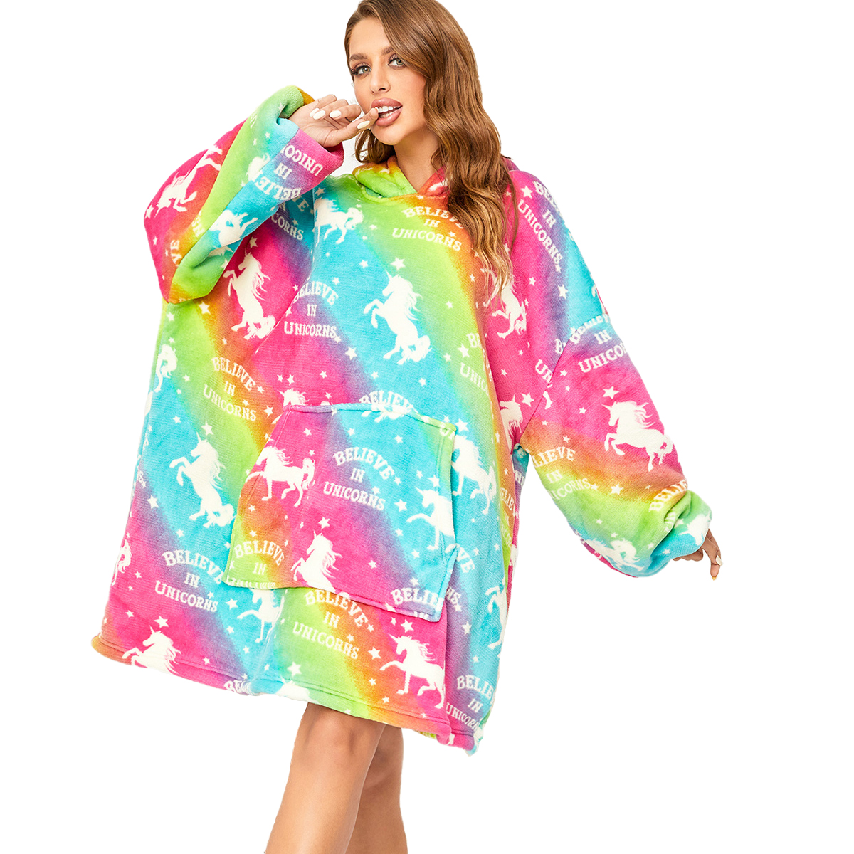 Beránková mikinová deka s rukávy a kapucí ALICORN barevná