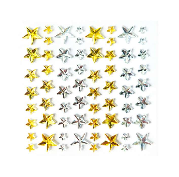 Samolepicí dekorační hvězdičky - mix stříbrné a zlaté, 64ks