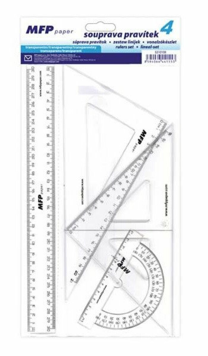 Pravítko rýsovací set 4 kusy čiré