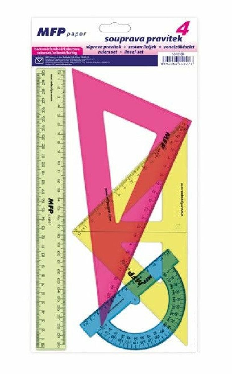 Pravítko rýsovací set COLOURS 4 kusy