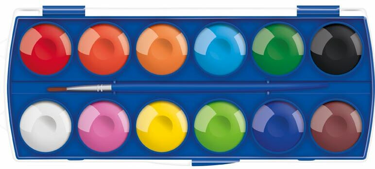 Barvy vodové 12 ks barev 30mm + štětec