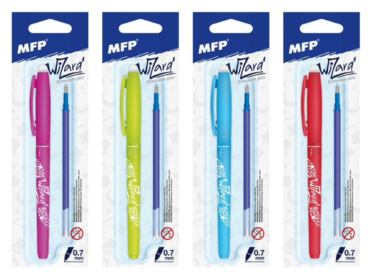 Kuličkové pero gumovací Wizard 0,7 modré BLISTR, + náplň
