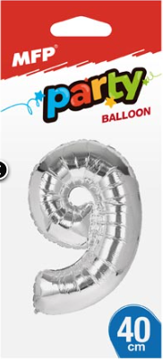 Balónek č. 9 nafukovací fóliový 40 cm - stříbrný