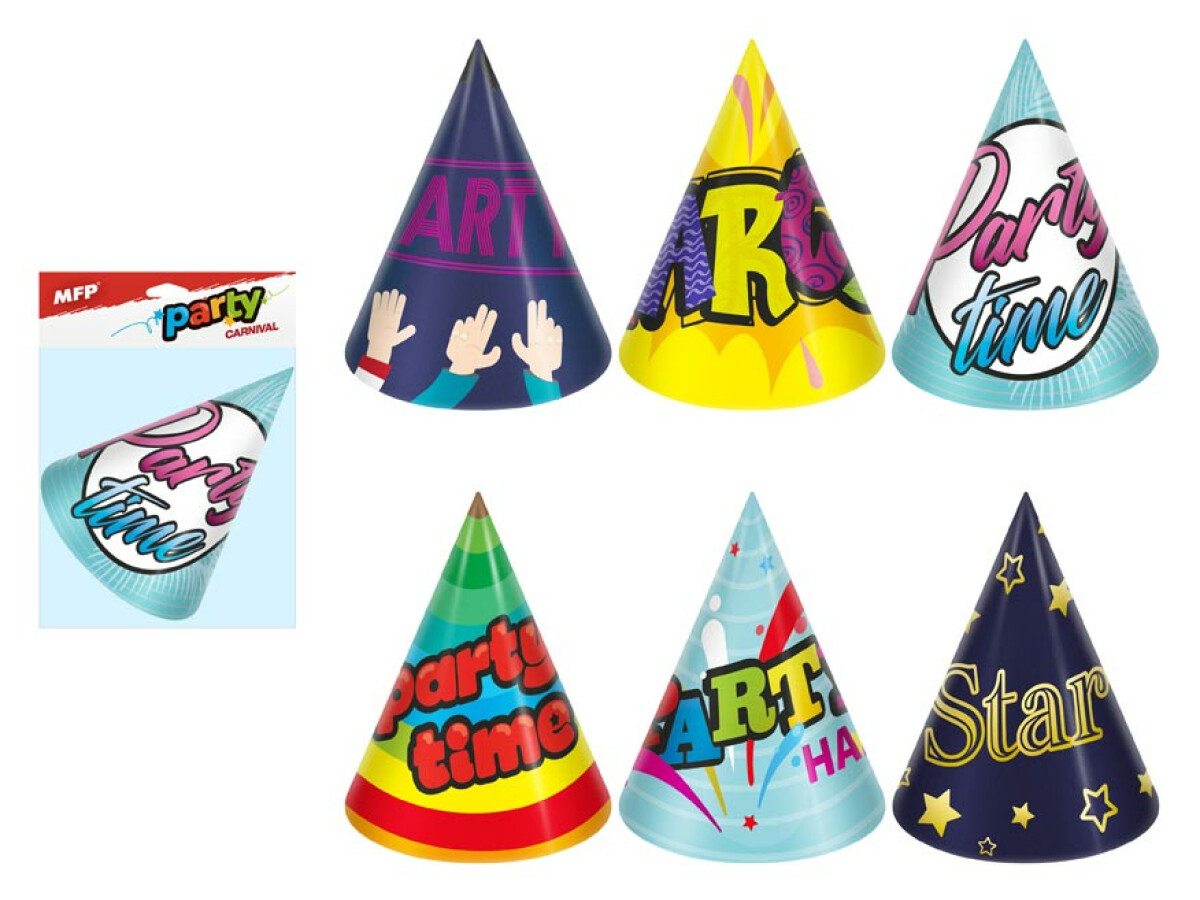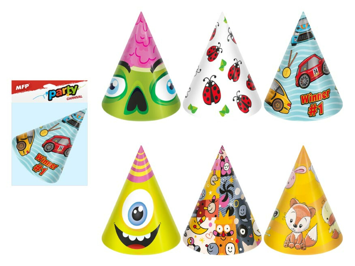 Klobouček karnevalový 6ks 16cm papírový mix č.4