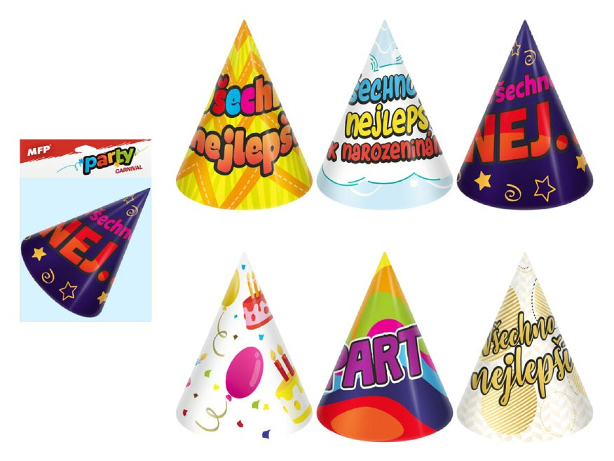 Klobouček karnevalový 6ks 16cm papírový mix