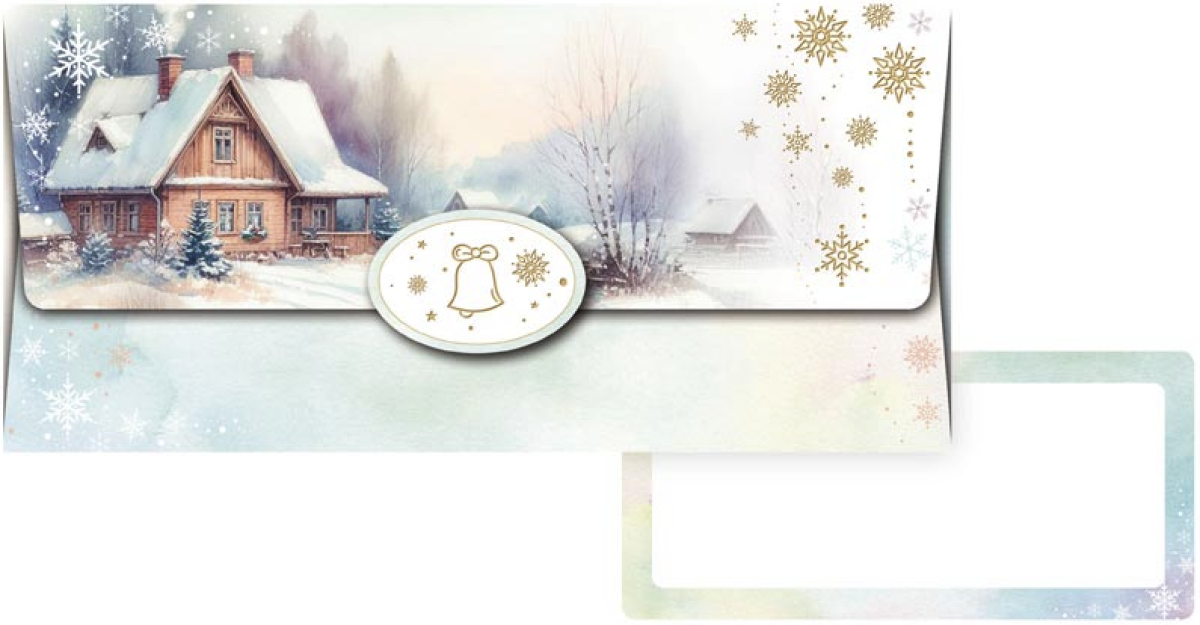Obálka na peníze Zimní chaloupka
