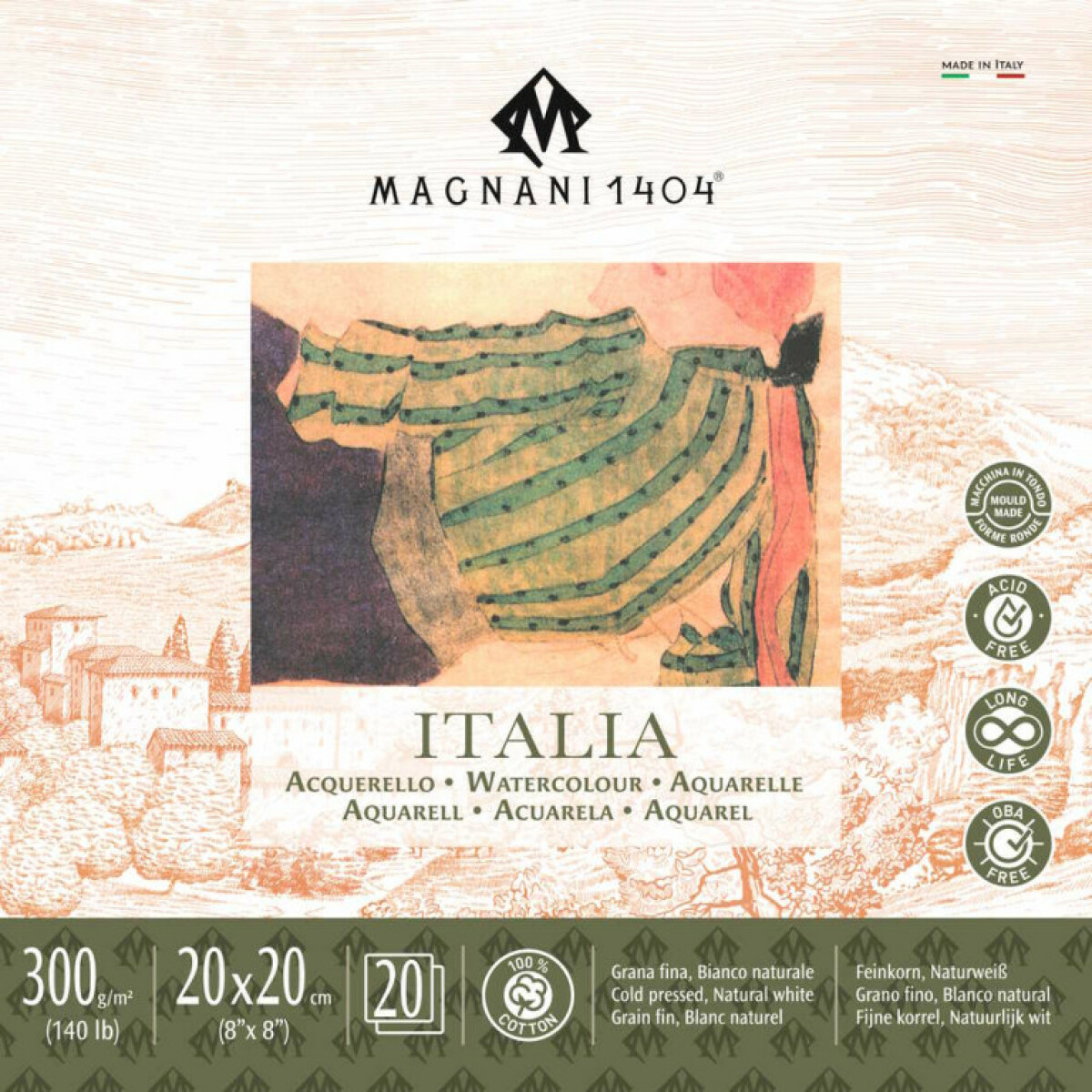 Akvarelový blok Magnani Italia 20x20cm 300g 100% bavlna