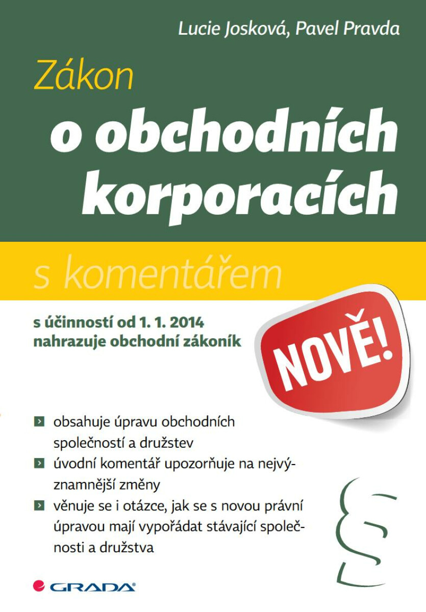 Zobrazit víceZákon o obchodních korporacích - Lucie Josková, Pavel Pravda